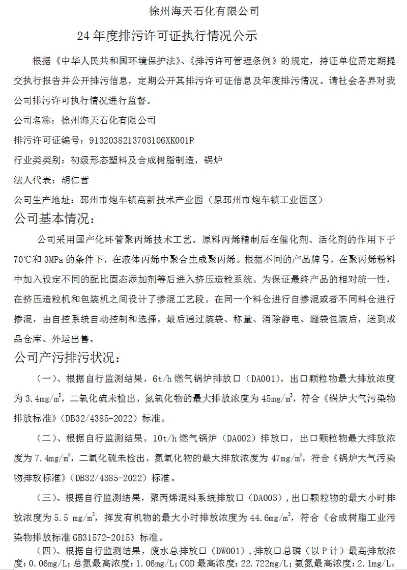 徐州AG尊时凯龙人生就石化有限公司 2024年度排污许可证执行情况公示